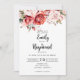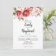 This Terracotta Burgundy Blush Floral Wedding Invitation features a romantic, hand-painted aesthetic perfect for an elegant celebration. The design is anchored by a lush arrangement of watercolor roses in deep crimson and soft blush tones that frame the top of the card.