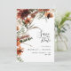Este convite de casamento natural e elegante apresenta terracota aquarela e flores rústicas vermelhas escuras, folhas secas e galhos. Design moderno e trendy.