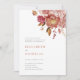 Terracotta Elegante Watercolor Convite Floral Para Casamento. Este belo convite para o casamento inclui peônias de terracota pintadas à mão, rosas de marsala, margaridas de natas e esfregões, e folhagem de sábado. Isto é parte da suíte de casamento de sangue legante.