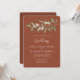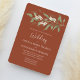 Celebre seu amor com este elegante convite de casamento do terracotta, com delicados sotaques florais e verdes. Perfeito para o outono, outono ou casamentos no inverno, esta design combina a tipografia do roteiro de caligrafia romântica com a formulação clássica formal para uma aparência de eterno. Ideal para a floresta rústica ou celebrações com temas florestais, traz encanto e sofisticação ao seu evento. Uma simples opção de download imprimível também está disponível, planejamento de fazer sem esforço e na moda.
