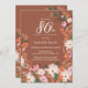 Convite de aniversário de queda russa. Pop de flores brancas brilhantes contra o fundo do terracota, fundo castanho. Flores silvestres laranja profundas, flores rosadas fluffy e folhas verdes profundas criam uma bonito mostra de outono de flores-prados. Texto branco e caligrafia de tendências adicionam detalhes encantadores.