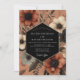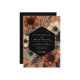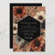 A rich terracotta background serves as the canvas for a dramatic arrangement of deep red and cream blossoms, accented with dark, leafy foliage. This design evokes a sense of sophisticated autumnal warmth and timeless elegance, perfect for a romantic gathering. The bold floral display creates a striking visual statement.
