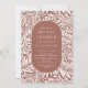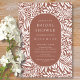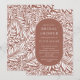 Padrão de folha e flor moderno com um na moda oval que enquadra as informações do seu partido em terracota e branco.