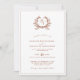 Este é um convite de casamento elegante, formal e clássico de folha botânica e monograma em terracota. A parte traseira da placa tem uma foto do casal e um código QR para os detalhes adicionais do seu site.