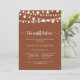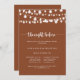 Esta noite de terracota antes do convite de janto de ensaio é perfeita para um evento rústico. A design apresenta belas luzes de cordas pintadas manualmente em um fundo de terracota.