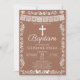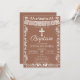 Elegant terracotta baptism invitation featuring delicate white papel picado banner details and ornamental flourishes inspired by traditional Mexican décor. A classic cross at the top adds a meaningful and reverent touch to this culturally inspired design.