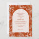 Celebrar a beleza do outono com nosso Terracotta Burnt Orange Floral Casamento outono Invitation, uma representação impressionante das matizes quentes da estação e elegância natural. Este convite expele um sentimento de conforto e romance, perfeito para uma celebração casamento outono. O fundo apresenta uma rica matiz terracota, simbolizando os tons de terra das folhas do outono e o calor de um fogo estalante. Arranjos florais deliciosos em sotaques queimados de laranja e ouro adornam os cantos, acrescentando um toque de beleza natural e sofisticação