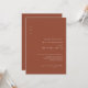 Prepare-se para celebrar seu dia especial com nosso Terracotta Burnt Orange QR Code All In One Wedding Invitation. Esse convite simples e moderno combina tons elegantes de terracota com um toque de laranja queimado, perfeito para aqueles que buscam um sentimento boêmico antigo. Com as suas vibrações rústicas do outono, este convite dá o tom para um casamento outono memorável. O design All-in-one inclui todas as informações necessárias, desde detalhes de recepção até RSVP, convenientemente em um único lugar. Nossa opção barato e econômica garante que você pode ter o casamento de seus sonhos sem quebrar o banco. Os tons de terra e as vibrações tropicais à beira-mar acrescentam um toque único ao seu dia especial. Você pode personalizar facilmente seu convite com um código QR que permite aos seus convidados RSVP on-line, fazer o processo sem problemas e conveniente. Faça um depoimento com nosso Terracotta Burnt Orange QR Code All In One Weditation Invitation e deixe seu amor brilhar no seu grande dia
