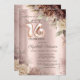Um doce 16 moderno, chico e glamouroso com rosas terracotta sobre fundo rosa de ouro.