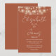 Convite Terracotta String Lights Elegant Script Weding