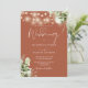 Este elegante convite para o casamento do terracotta, com luzes bonito de cordas e verde floral, pode ser personalizado com suas informações em tipografia quic com seus detalhes no website do casamento e seu código QR no verso. Projetado por Thisnotme©