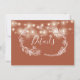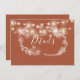 Um elegante cartão de detalhes do casamento de terracotta com luzes bonito de cordas e flores desenhadas à mão. Personalize com seus detalhes especiais definidos na tipografia da na moda. Projetado por Thisnotme©