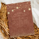 Teracota moderna, elegante e chic e convite para casamento de ouro com brilho dourado e luzes de cordas. Personalize com seu próprio texto.