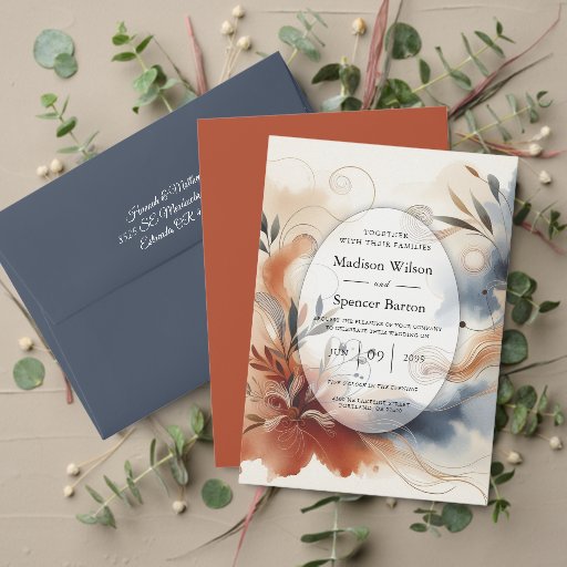 Convite Terracotta Twilight e Marinho Blooms Casamento