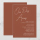Terracotta Whimsical Script Chic Um Dia Longe Do Cartão De Convite. Celebre o seu dia especial com esta elegante e bela carta de convite para casamento para embelezar a sua ocasião especial. Todos os textos estão pré-organizados para que você personalize fácil e rapidamente com seus próprios detalhes.
