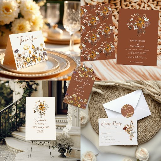 Convite Terracotta Wildflower Boho Casamento outono