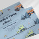 Celebre o grande dia do seu pequeno construtor com este divertido Convite de Aniversário de Dois Caminhões de Construção! Apresentando veículos de construção coloridos e tipografia divertida, este convite dá o tom perfeito para uma festa de segundo aniversário animada e aventureira. Perfeito para crianças que amam caminhões e cavam na terra, este design é brincalhão e vibrante, fazer qualquer robalo de aniversário inesquecível.