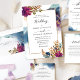 Convite de casamento elegante e impressionante com lindas tintas de cor branca, roxa, fuchsia e azul com elementos dourados que fluem atrás de seus detalhes, bem como um belo convite para enquadrar embelezamentos florais de canto. Manchas aquáticas, folhagem e flores numa mistura criativa de roxo, fúcsia, magenta, chás, turquesa, azul, marinho, mostarda, ouro amarelado e matizes verdes. Parte da nossa Coleção "Jardim Místico" com uma variedade de produtos de coordenação disponíveis.