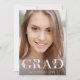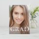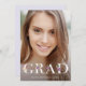 Este belo convite à festa de formatura de moda mostra uma foto do formando na frente, com texto branco moderno decorado com lindas flores roxas de aquarela. Toda a informação da sua parte de formando vai para o fundo, num sutil fundo roxo leve.