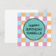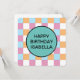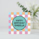 Padrão de xadrez legal, azul, laranja, branco e rosa e um modelo de texto. Para editar, clique em personalizar e altere as palavras.