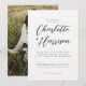 Um simples guião manuscrito moderno e minimalista casamento de tipografia com um convite de textura de linho gravado, com sua foto de casamento no verso. Substitua a foto de amostra pela sua própria foto de casamento. Use a ferramenta design simples para alterar a fonte ou digitar a cor. Disponível em impressão, como download digital ou ambos.