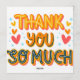 A bright and cheerful “Thank You So Much” typography design featuring bold, colorful letters with layered shadows. Surrounded by cute heart doodles and tiny star accents, this artwork spreads positivity and gratitude in a fun, uplifting style. P