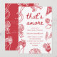 Shower the bride with love (and pizza) with this “That’s Amore” bridal shower invitation by Redwood & Vine Design Co, inspired by Italian aperitivo culture, shared plates, and spritz-filled celebrations. Designed with bold red artwork and whimsical doodle food and cocktail illustrations, this invite sets the tone for a sweet and stylish Mediterranean summer bridal shower. Includes additional details on the back, including a customizable registry QR code.