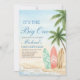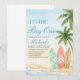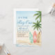 The Big One Beach Surf 1st Birthday Invitation A Watercolor Surfboard Beach First Birthday invitation featuring tall palm trees, colorful floral and chevron surfboards, and a gentle ocean shoreline. Perfect for parents planning a stylish "The Big One" celebration for their little surfer.