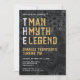 His life has been a great adventure! This fabulous black men's 75th birthday party invitation that says "The Man The Myth The Legend" in a trendy grunge CAP font in white and gold would be perfect for asking people to join you as you celebrate the man in your life's 75th birthday. This invitation is stylish, modern and contemporary with the wheels of time turning in the background. To see your unique invitations select "Personalize this template" and type in your information. It's super easy!