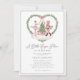 The Nutcracker Little Sugarplum Girl Baby Shower Invitation - a truely whimsical baby shower invitation featuring the sugarplum fairy and the nutcracker decorating the Christmas Tree on a cloud, surrounded by a greenery heart and pink coquette bow. Adorable!
