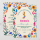 A three esta Fiesta birthday party invitation featuring a mexican floral folk art with cactus theme celebrating Cinco de Mayo day with maracas, and a sombrero with a girl Three-esta birthday. A cute and colorful folk art with elegant typography is a perfect combination to celebrate the 3rd birthday in folk style.