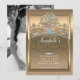 Convite Tiarra de Coração de Princesa Dourada Glam Quincea