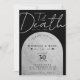 Legal convite para casamento de cinzas e preto com lápide e texto até a morte nos separe. Personalize-o com seus detalhes de casamento e adicione uma foto do novo casal no verso.