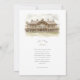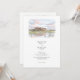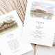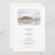 Clean, classic typography is centered beneath the artwork, leaving generous white space for a refined, gallery-print feel. The coordinating back continues the fine-art look with a closer architectural vignette of the venue above a “Finer Details” section, perfect for directions, schedule notes, transportation, or website information. All text is fully customizable, making this design ideal for rustic lodge, country club, estate, or lakeside weddings that want to highlight the beauty of their location in a timeless watercolor style.