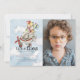 O convite fotográfico de aniversário deste menino giro e caprichoso mostra um coelho e um urso num avião com balões coloridos no céu azul. O verso apresenta um fundo azul claro com padrões de nuvem. Personalize-o para as suas necessidades. Você pode encontrar mais produtos correspondentes na minha loja.