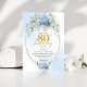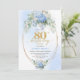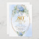 Convite Timeless Dusty Blue Gold 80th Birthday Invite