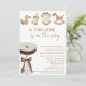 Convite de Chuvinha de Bebê "Um Tini está a Caminho" Espresso Martini com Código QR - Um convite de chuvinha de bebê único e adorável com um martini de espresso adornado com um laço coquete marrom moca e itens de bebê, uma mamadeira, cavalo de balanço, body de bebê e patinho de brinquedo vintage, todos ilustrados em aquarela. Fonte elegante e manuscrita ao lado de uma fonte bloco elegante em tom marrom. Edite este modelo de convite de chuvinha de bebê com os detalhes do seu evento. Perfeito para chuvinhas de bebê na primavera, verão ou outono. Para pais ou mães que procuram algo diferente e único. Disponível em download impresso e digital, perfeito para enviar via mensagem de texto, e-mail ou redes sociais. Facilite o acesso dos seus convidados ao site da sua lista de presentes adicionando