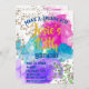 Salpicos de tinta aquarela em rosa brilhante, azul e roxo com acentos de brilho dourado tornam este um visual abstrato de um design tradicional de tingimento. É um convite perfeito para uma festa de aniversário com pintura ou para alguém com uma personalidade brilhante. Todo o texto pode ser facilmente alterado para fazer com que este convite se adapte a qualquer ocasião! Cartões de agradecimento acompanhantes disponíveis na Coleção Watercolor Tie Dye!