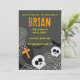 Teias de aranha de crânio e convite de aniversário de Halloween com teias de aranha espalhadas por todos os morcegos voando e jogando crânios este convite é perfeito para estabelecer o clima para a perfeita festa de aniversário temática de Halloween