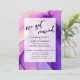 Essa distinção de convite se deve à fonte moderna e manuscrita usada para renderizar a frase "nos casamos" e à imagem de fundo vibrante em tons de roxo. Essa obra de arte abstrata "líquida" lembra fumaça e aquarela com linhas finas sobrepostas e desaparecendo em novas direções. Use os campos do modelo para adicionar seus detalhes pessoais e tornar esse design moderno e único seu. Este design é perfeito para a celebração após o casamento, anúncio de fuga ou festa de casamento apenas na recepção. // 100 //