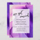 Essa distinção de convite se deve à fonte moderna manuscrita usada para renderizar a frase "nos casamos" e a imagem de fundo vibrante em tons de roxo. Essa obra de arte abstrata "líquida" lembra fumaça e aquarela com linhas tênues sobrepostas e desaparecendo em novas direções. Use os campos do modelo para adicionar seus detalhes pessoais e tornar esse design moderno e único seu. Este design é perfeito para a celebração após o casamento, anúncio de fuga, ou festa de casamento somente no reception. // 100 //