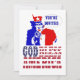 Tio Sam patriótico vermelho, branco e azul com slogan Deus abençoe a América e bolha de texto personalizável. Adicione facilmente seu próprio texto a este design para seus convites de 4 de julho, independência, festa política.