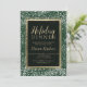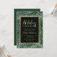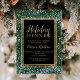 Um feriado moderno, chico e elegante de tipografia de ouro janta convite de festas de Natal com moldura de ouro em verde elegante com neve branca e flocos de neve.