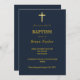 Convite Típica Dourada elegante cruza batismo em azul Mari