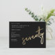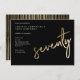 O convite de aniversário moderno minimalista apresenta na moda faux gold foil number 77 e os detalhes do seu partido em serif clássico sobre cor preta, simples e elegante, convite de aniversário para homens e mulheres, para a surpresa do excelente. A cor preta de fundo pode ser alterada para qualquer cor de sua escolha.