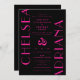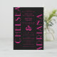 O teu casamento vai POP com o convite de casamento da Jessica Amber. Este cartão de classe apresenta um esquema de cor preto e rosa quente. Os nomes do casal são escritos em grande tipografia vertical Art Deco. O verso apresenta um monograma moderno. Para mais suites de casamento, visite minha loja Zazzle.com/EventsByJessicaAmber ・ ・ ・ Para pedidos personalizados, envie-me uma mensagem no Zazzle