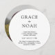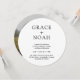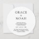 Convide a família e os amigos para uma simples celebração de na moda casamento com convites elegantes e personalizados para fotos redondas. Toda a redação neste modelo é simples de personalizar e as cores podem ser alteradas com a ferramenta Zazzle design. O moderno design preto e branco minimalista mostra uma foto do casal noivo e da elegante tipografia clássica. Este convite contemporâneo chic adiciona um toque único a uma próxima celebração especial de dia. Parabéns para a noiva e o noivo!