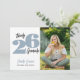 Este convite para festas de formatura apresenta o ano de graduação em grandes números azuis e empoeirados e emparelhados com texto de estilo de escrita manual. O design oferece uma foto vertical na frente e uma horizontal na parte traseira. O texto personalizado, no verso, permite que você adicione os detalhes do convite da sua parte.