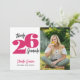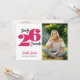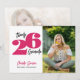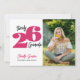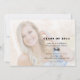 Este convite para festas de formatura apresenta o ano de graduação em grandes números magenta em negrito e emparelhado com texto de estilo de escrita manual. O design oferece uma foto vertical na frente e uma horizontal na parte traseira. O texto personalizado, no verso, permite que você adicione os detalhes do convite da sua parte.