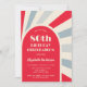 O convite de aniversário da tipografia do raio de sol para o Red, cinza e creme retro sunshine. Pode ser personalizado para qualquer idade!